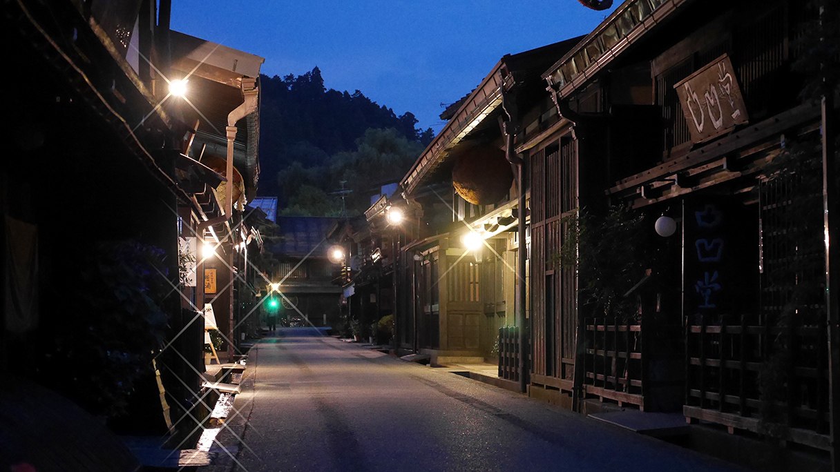 - 天正14年(1586)に武将・金森長近が高山に拠し、城下町を築いて以降、その美しい町並は高山のシンボル。西にはお堀に最適な宮川、東には要塞となる丘陵地があり、城下町に最適な立地でもありました。特に美しいと評判の上三之町周辺は、まっすぐな道の両脇に用水が流れ、飲食店や土産物店に改装された町家が並びます。今でも多くの人が行き交う様子は、商人の町だった当時のにぎやかな光景を思わせます。