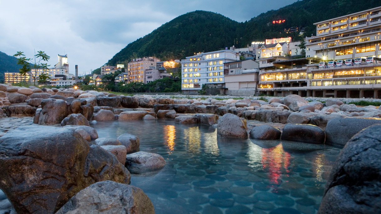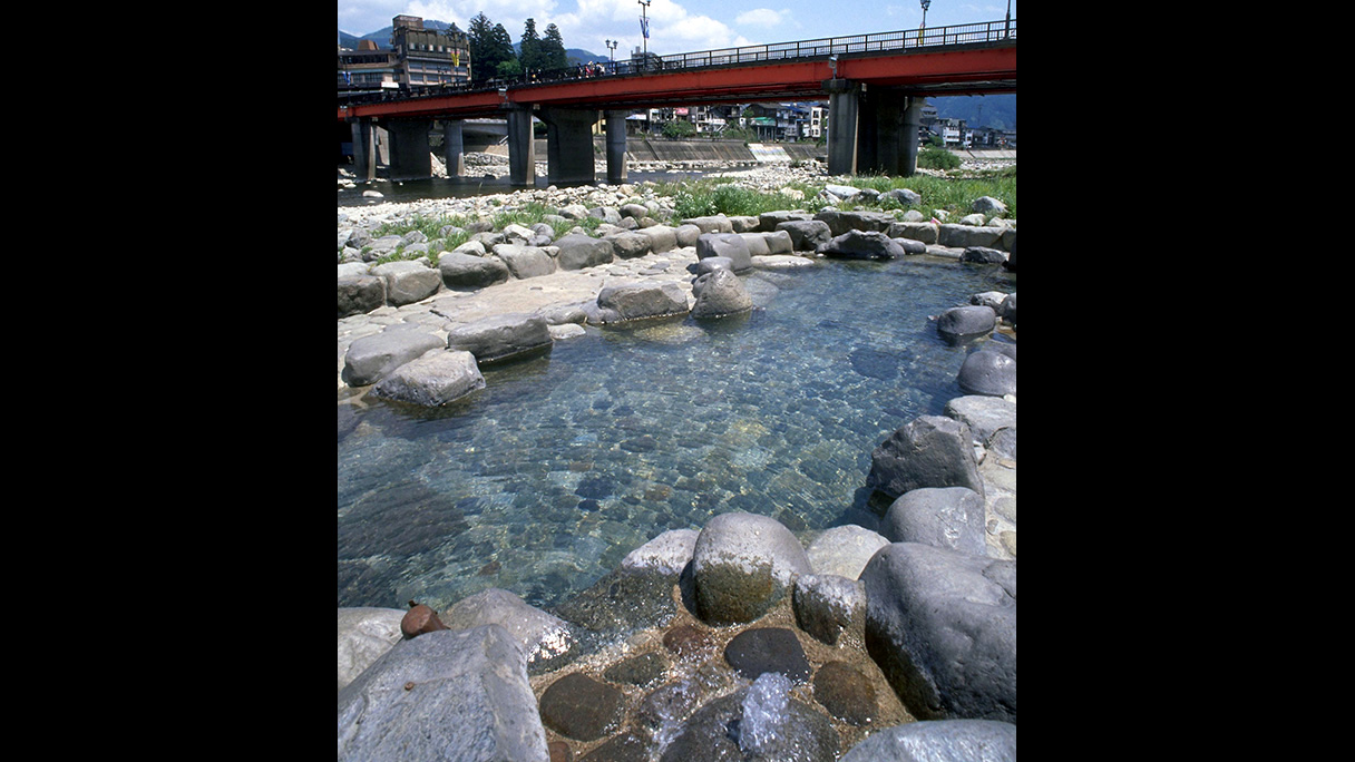 - 温泉街の名物として、無料で開放されているのが「噴泉池」です。飛騨川河川敷にあり、源泉を岩で囲っただけの野趣あふれる造りが特長。脱衣場や囲いはありませんが、近年水着の着用が義務付けられたため、より気軽に利用することができるのではないでしょうか。下呂大橋周辺に広がる街並みを見ながら、下呂温泉の醍醐味を堪能しませんか。