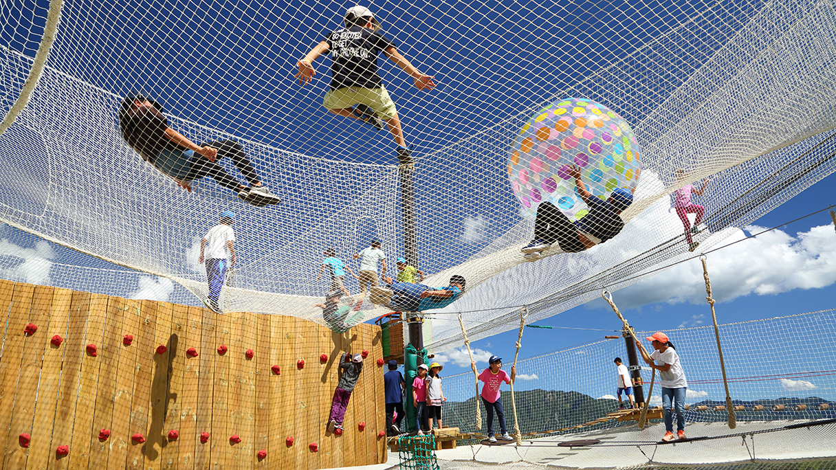 - 標高約1,900m、例年6月中旬からようやく雪解けが始まる、日本有数の高層湿原。総面積約100haの広さの湿原に、数百種もの高山植物が生息しています。本州で最も遅咲きといわれる水芭蕉の大群生が咲き、また7月から8月にかけて多くの花々が咲き誇り、園内は1年で最も華やかに。見どころのひとつは、白い綿毛のような果穂を揺らすワタスゲの群生。遊歩道からそよ風に揺れる可憐な姿をじっくりと楽しめます。園内の最奥には、日本三大雪渓の一つである白馬大雪渓を眼前に望むビュースポットもあります。ゴンドラリフト中間駅付近に2018年夏、フランス発祥で日本初のアクティビティが楽しめる「白馬つがいけWOW!」がOPEN。小さなお子様から大人まで、新感覚アドベンチャーを楽しめます。