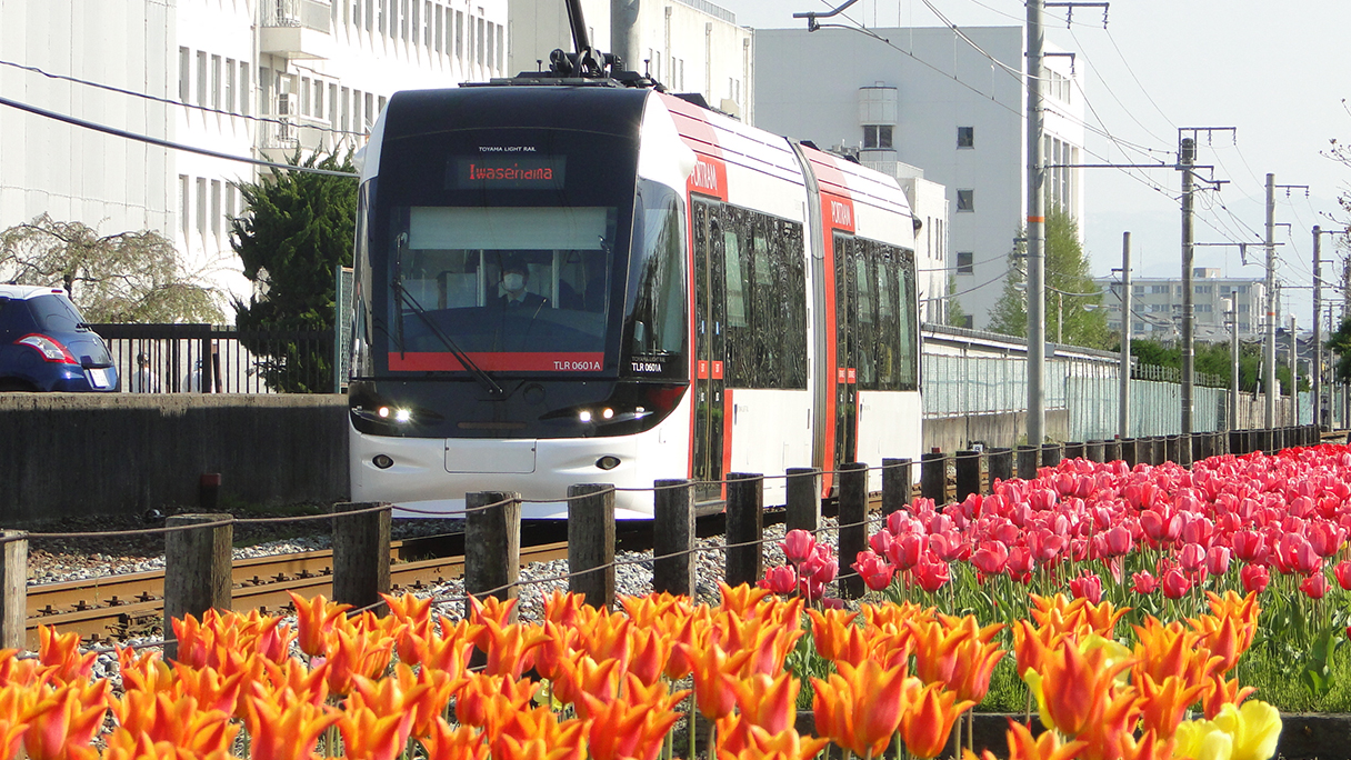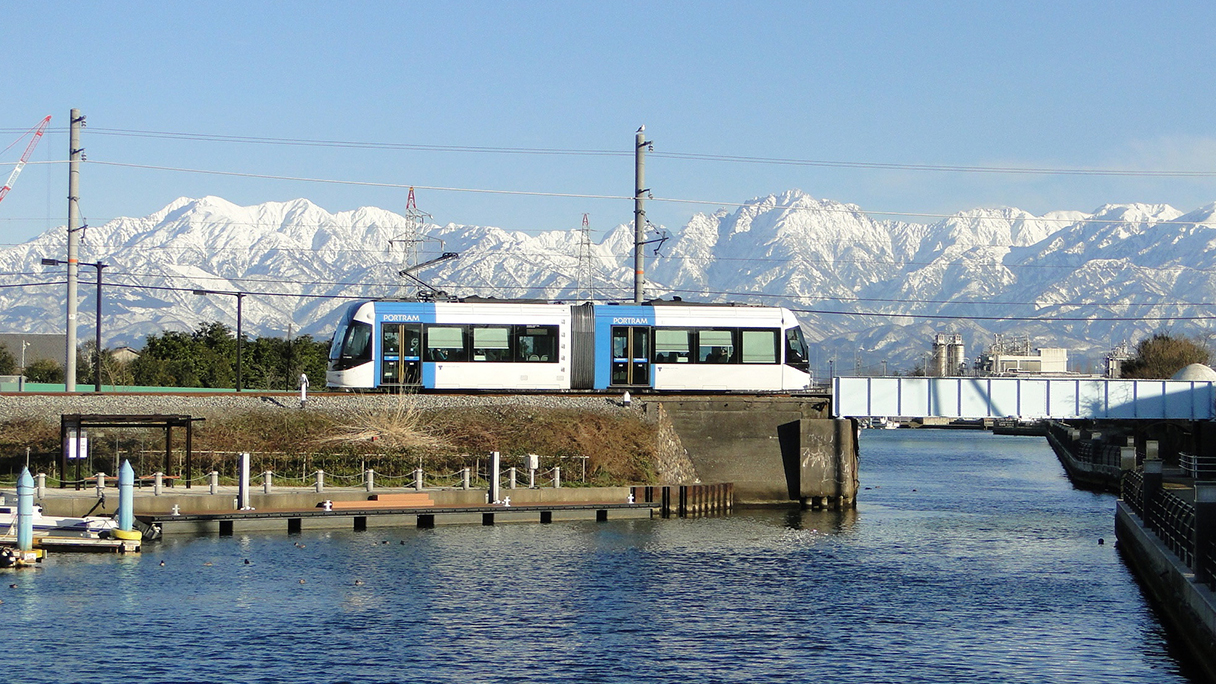 - ライトレール(LRT)は「Light Rail Transit」(次世代型路面電車システム)の略。乗り降りしやすい低床式の車両を採用するなど、人と環境にやさしい交通体系として注目を集めています。そのライトレールを平成18年(2006)日本で初めて導入したのが、富山ライトレール。「ポートラム」の愛称で親しまれる車両が、にぎわいの富山駅北エリアと、かつて北前船で栄えた港町の岩瀬エリアとを結ぶ路線を走っています。ポートラムは、立山の雪をモチーフとしたスノーホワイトを基調に8色のアクセントカラーを配色したオシャレなもの。電停には周辺の歴史や観光スポットを紹介する壁面パネルが設置されていて、乗っているだけでもちょっとした観光気分を味わえそうです。