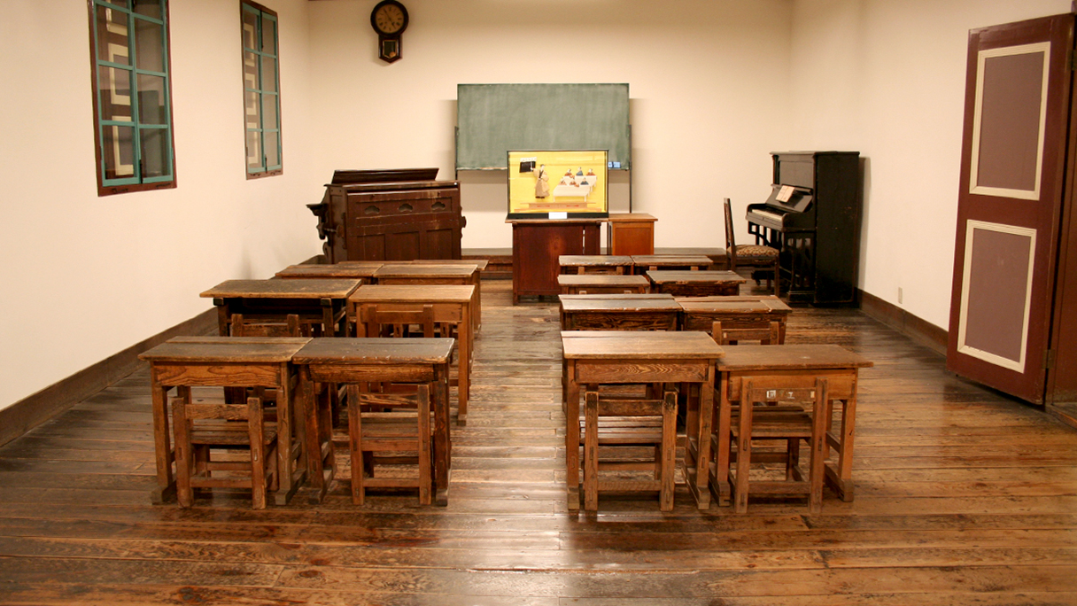 - 明治6年(1873)開校、現存の校舎は明治9年(1876)竣工。その建物を利用した、貴重な教育博物館です。校舎は、文明開化を象徴する擬洋風建築の代表的建築物。昭和36年(1961)に国の重要文化財に指定された後、小学校としての約90年の歴史を終え、移築復元され、令和元年(2019)9月30日に国宝に指定されました。歴史を感じさせる建物や室内のしつらえ、備品などを眺めれば、江戸から現在までの教育の移り変わりが身近に感じられることでしょう。