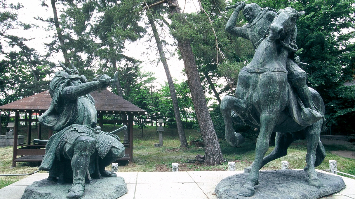 - 武田信玄と上杉謙信の「川中島の戦い」で最も激しい合戦の舞台となったといわれる八幡原に整備された史跡公園です。かの戦いで杭として使った木が約400年かけて逆さの巨木となったという伝説を持つ逆槐(さかさえんじゅ)のほか、八幡社旧社殿、三太刀七太刀之跡の碑、信玄・謙信一騎打ちの銅像などが見学できます。園内には、「長野盆地の歴史と生活」をテーマに掲げて出土品や資料を展示する長野市立博物館やプラネタリウム(土・日・祝日・春休み・夏休み投影)が併設されています。
